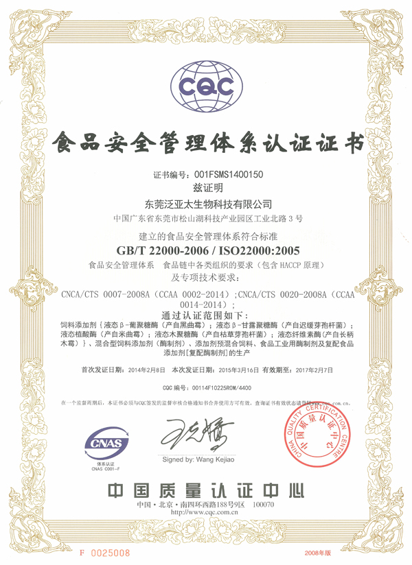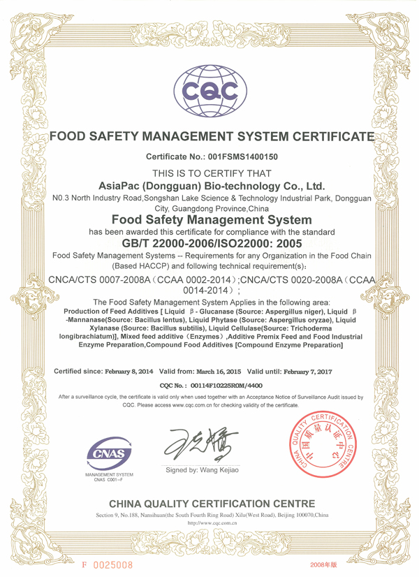 ? 生產(chǎn)過程采用ISO9001:2008以及ISO22000:2005(HACCP-EC-01)體系以保障產(chǎn)品的質(zhì)量