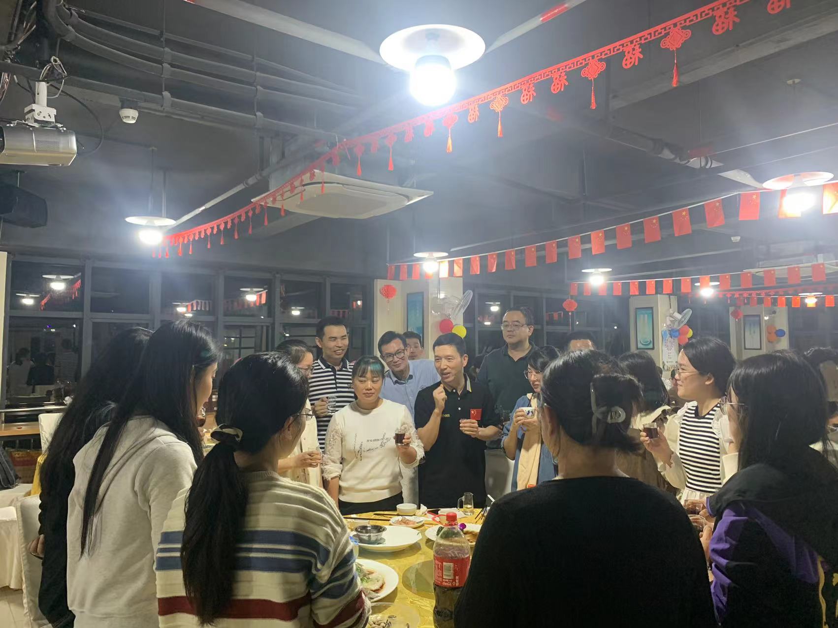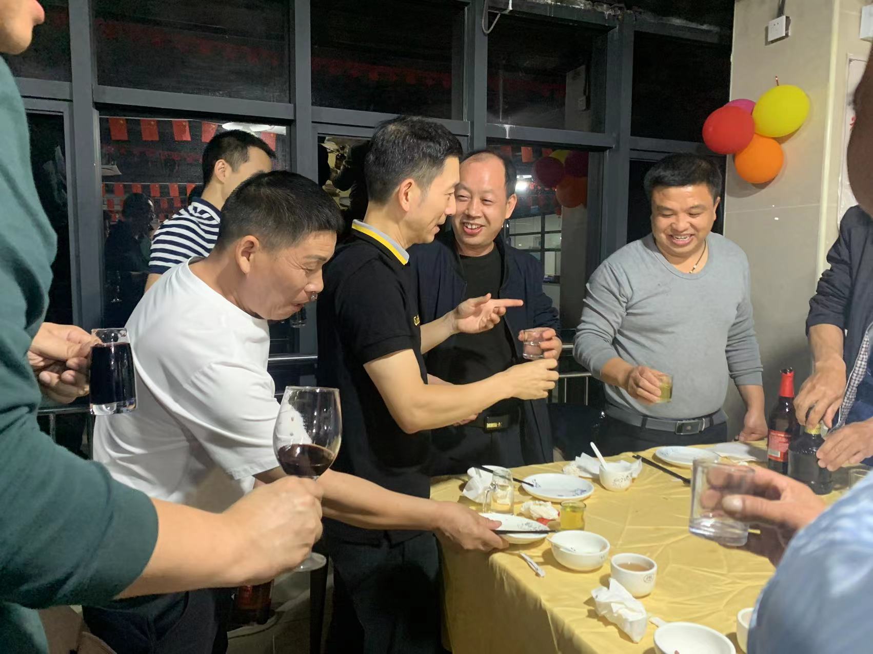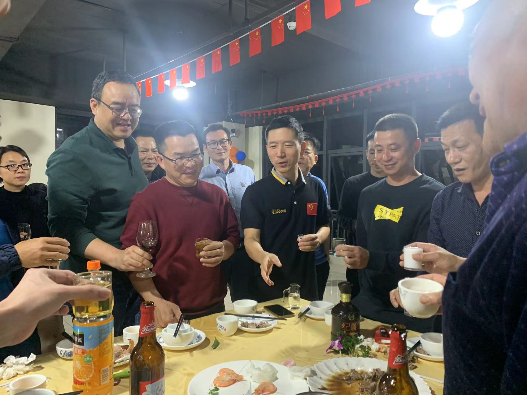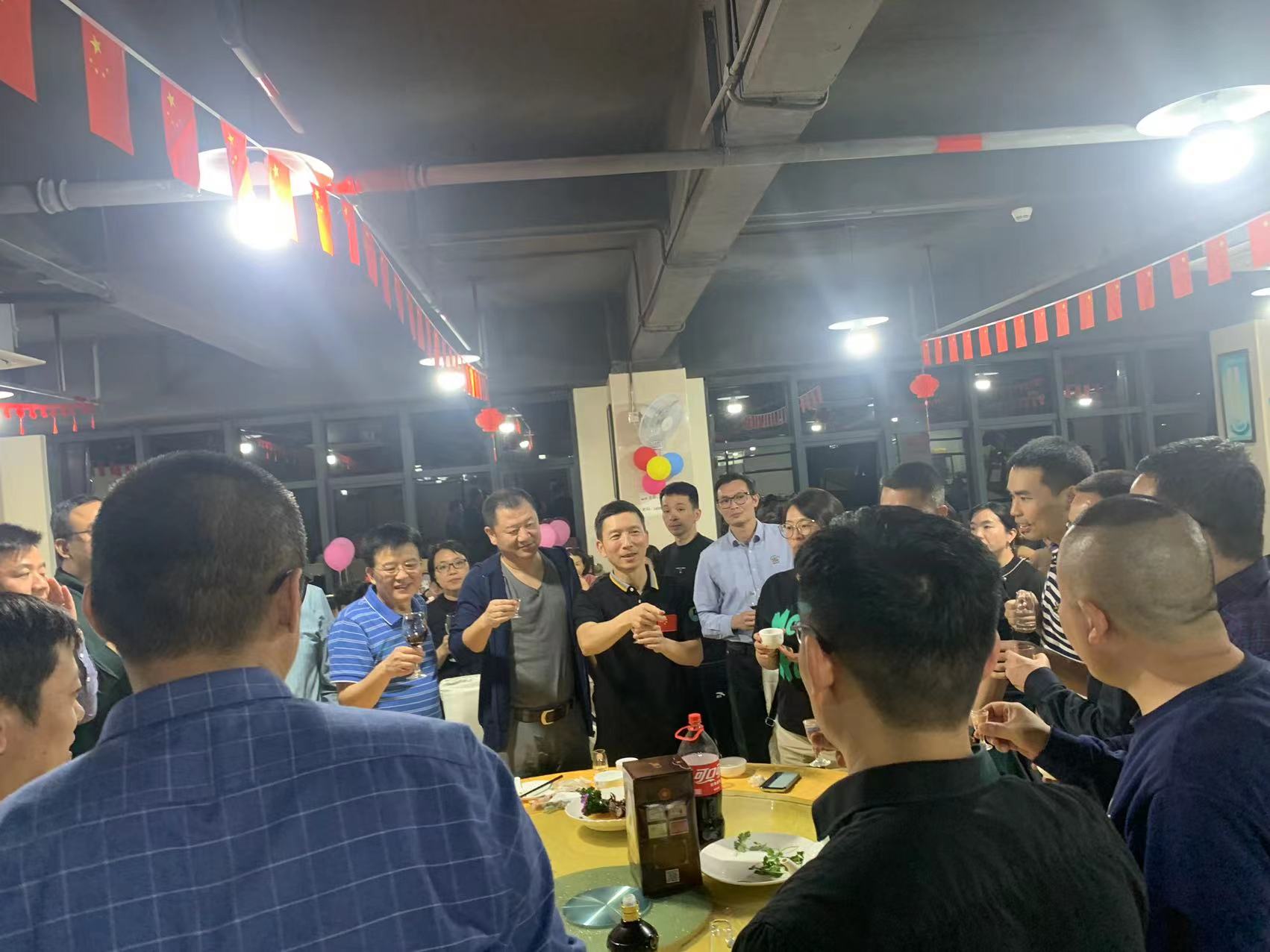 吳革華董事長和公司部門領(lǐng)導(dǎo)上臺祝酒,宣布晚宴正式開始!