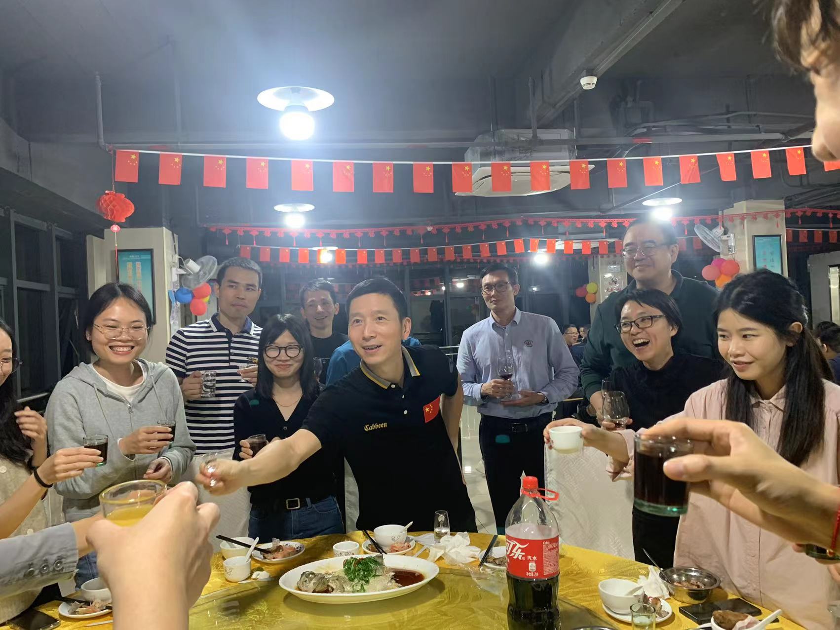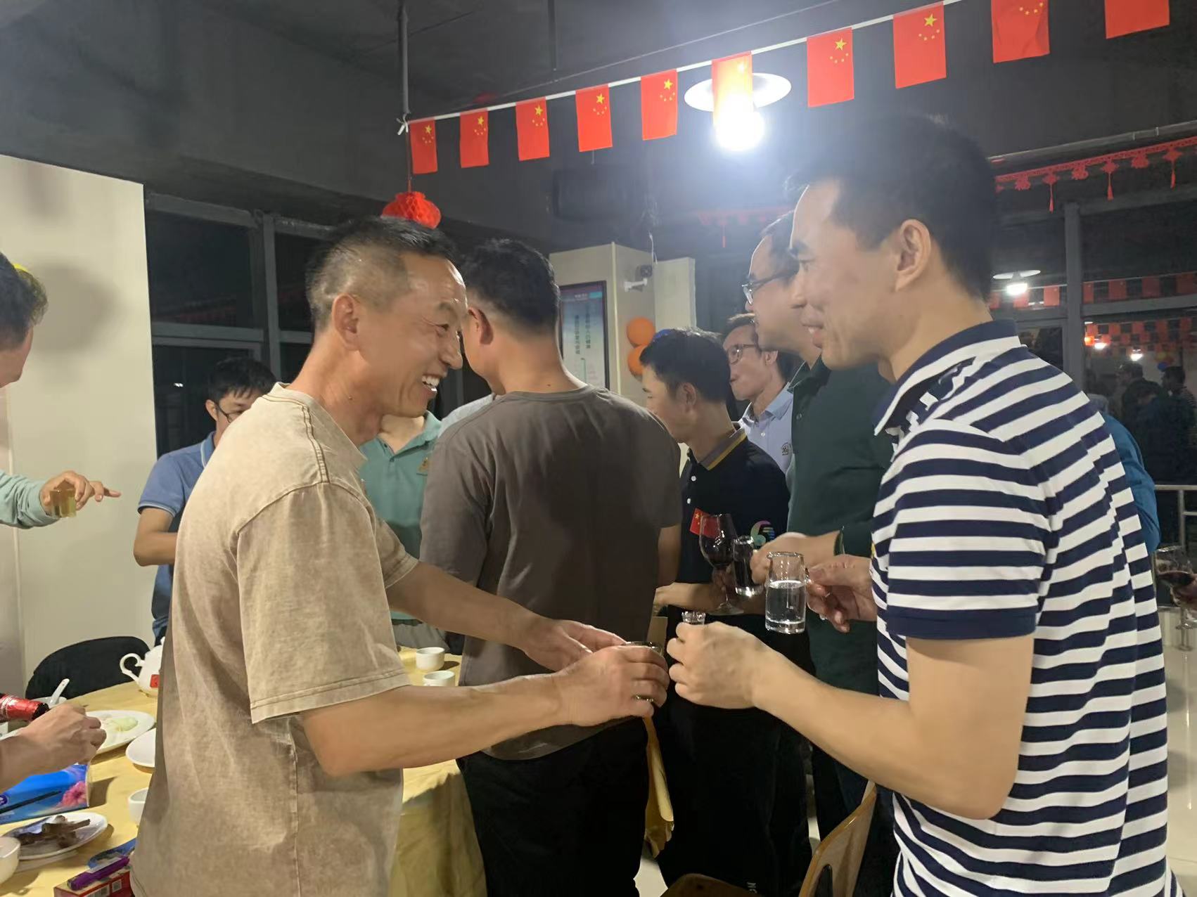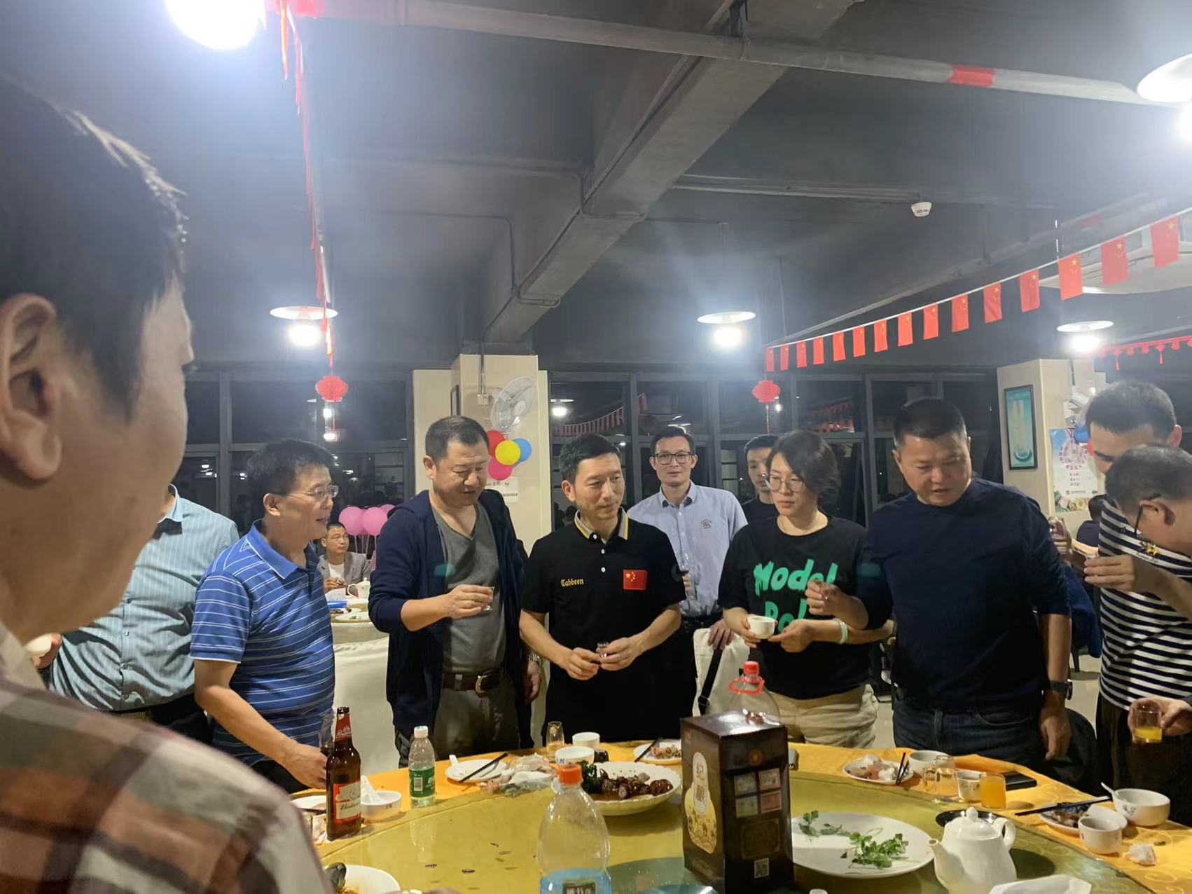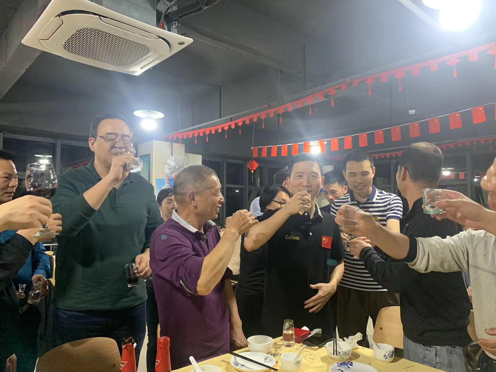 吳革華董事長和公司部門領(lǐng)導(dǎo)上臺祝酒,宣布晚宴正式開始!
